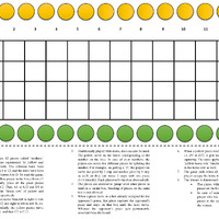 4x12 board. Twelve pieces per player. Pieces begin in the outer rows of the board. Four sticks serve as dice, painted on one side and blank on the other. The throws are as follows: one blank side up = 2; two blank sides up = 0; three blank sides up = 0; four blank sides up = 8; four painted sides up = 12. Throws of 2, 8, and 12 give the player another throw. Players must use each throw to move a piece. They may only subdivide a throw in half to move two pieces, otherwise they must use one full throw to move a piece. The first move for each piece must be a throw of 2. This can be divided into two throws of 1 to move two pieces. Play moves from left to right in the player's home row, from right to left in the second row, left to right in the third row, and right to left in the opponent's home row. When a piece enters the opponent's home row, it can no longer move. When a player's piece lands on a space occupied by an opponent's piece, the opponent's piece is captured. A player may not land on the same space as another of the player's pieces. The player which fills up the most of the opponent's home row wins.