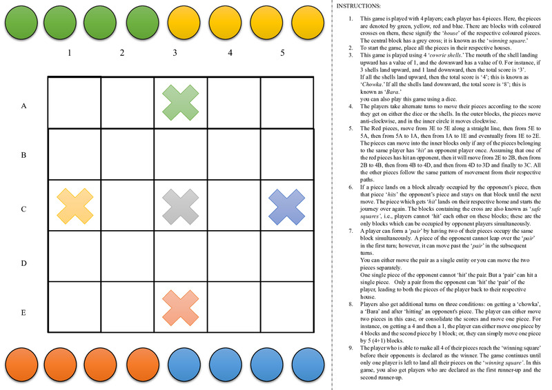 - This is a downloadable resource of a Chowka Bara Game one can download and play referring to the rules and using the given pieces.