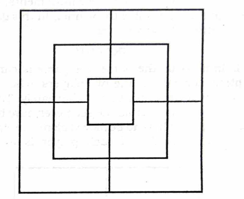 In the game of nao-guti (nine pieces), each of the two players plays with nine pieces and alternately puts one of his pieces on the ‘cross-points’, aiming to get three pieces along one line, while preventing his opponent from doing so.