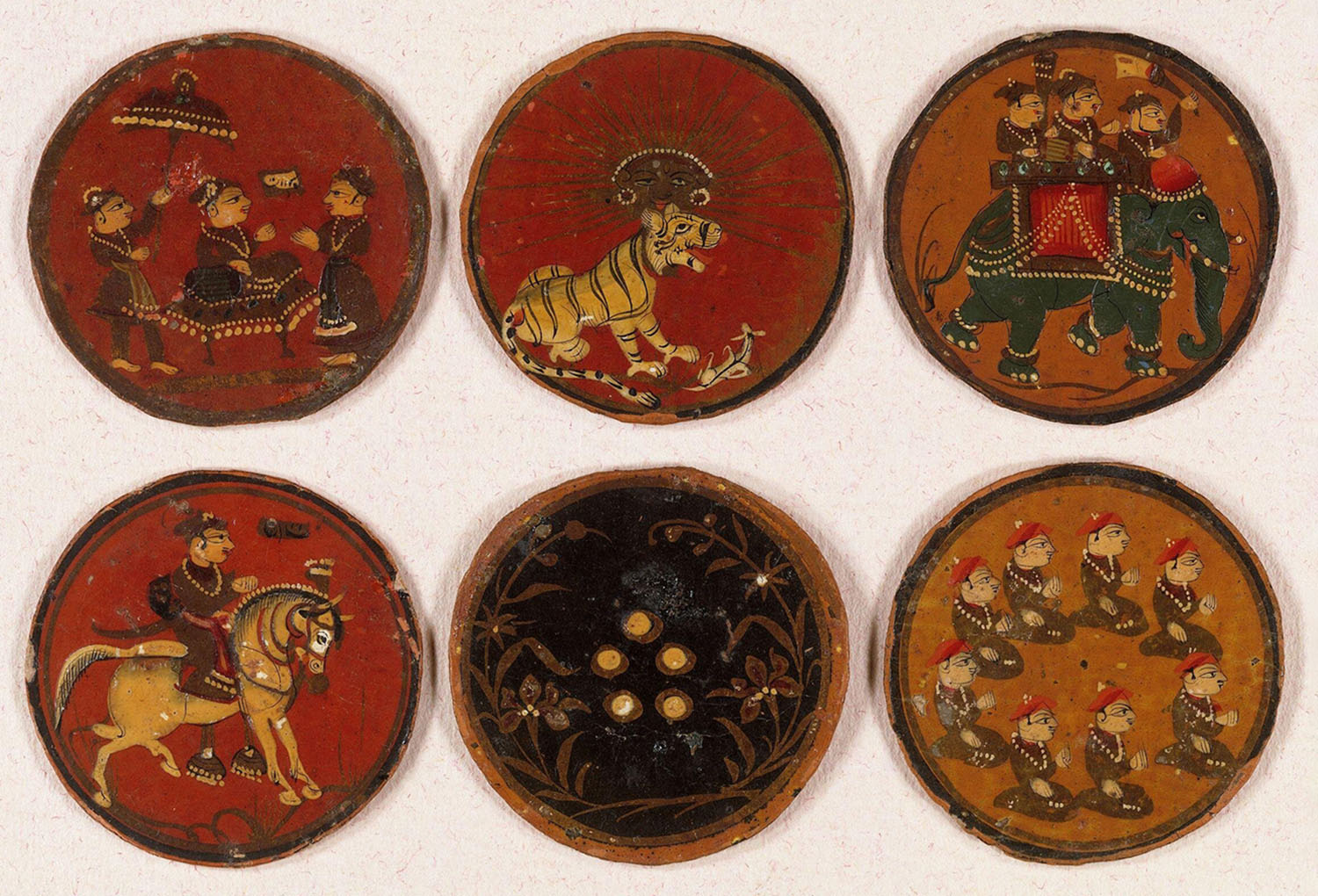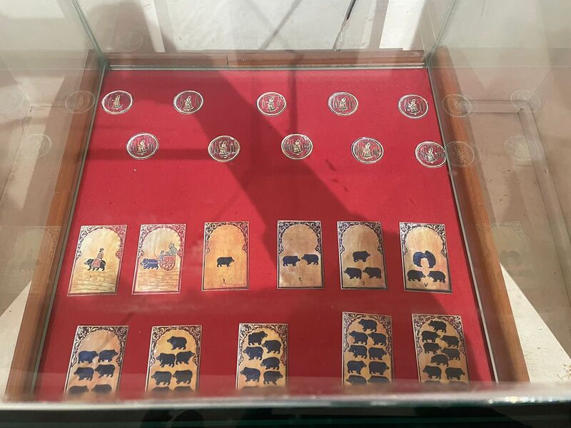 For the next two centuries, Mughal-style Ganjifa remained popular in various regional courts across India. As the game spread, different regions developed their own unique variations and styles. The image here is from Rajasthan's Udaipur Palace and has been kindly shared by Professor Nirmala Menon.
