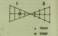 Tarup Ar Merom (leopards and goats) This game was recorded in a text titled ‘Hoṛ Gidra Enec’ which documents seventy three different games played by the Santhals. The text is written in Roman and the language is Santhali so the exact rules of the game could not be translated. According to the Santhali dictionary, Tarup means leopard and merom means goats. The image of the game is given in the book which was digitised in The endangered archives programme by The British Library in the project titled 'Locating and digitising early Santali periodicals published between 1890 and 1975 in Eastern India (EAP1300)'. According to the diagram of the structure of the board it also finds similarities with other alquerque games like Lau Kata Kati.